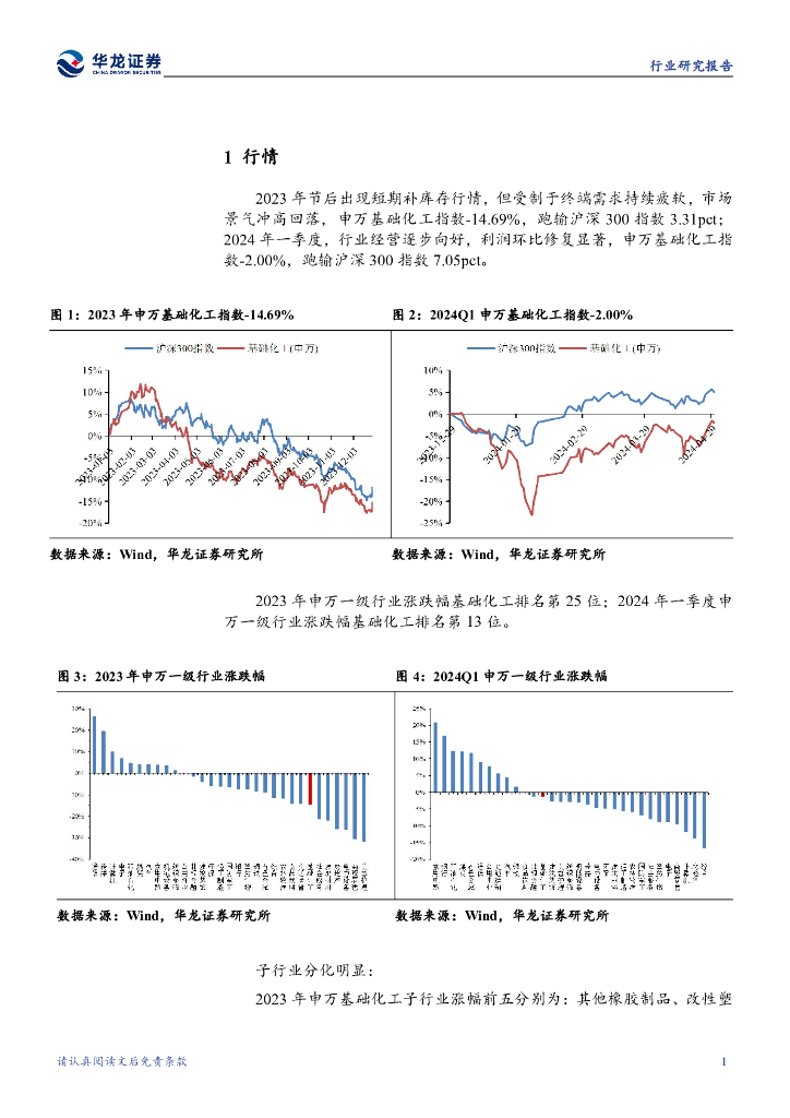 华龙证券:基础化工行业2023年报及2024年一季报综述:整体经营向好,盈利能力改善.pdf