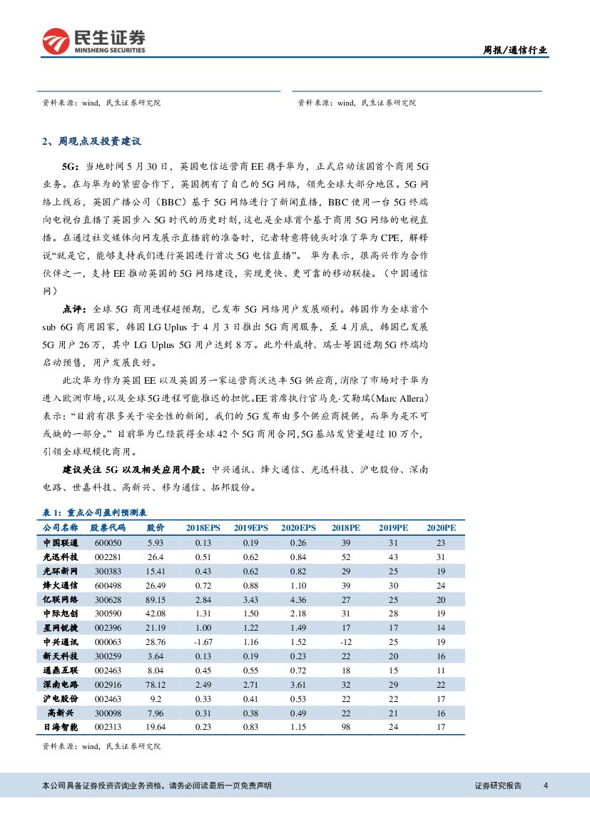 民生证券:通信行业周报:华为助力英国EE首发5G商用,全球5G商用进程超预期.pdf