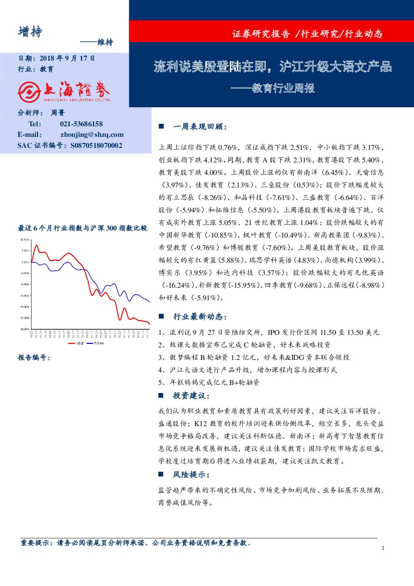 上海证券:教育行业周报:流利说美股登陆在即,沪江升级大语文产品.pdf