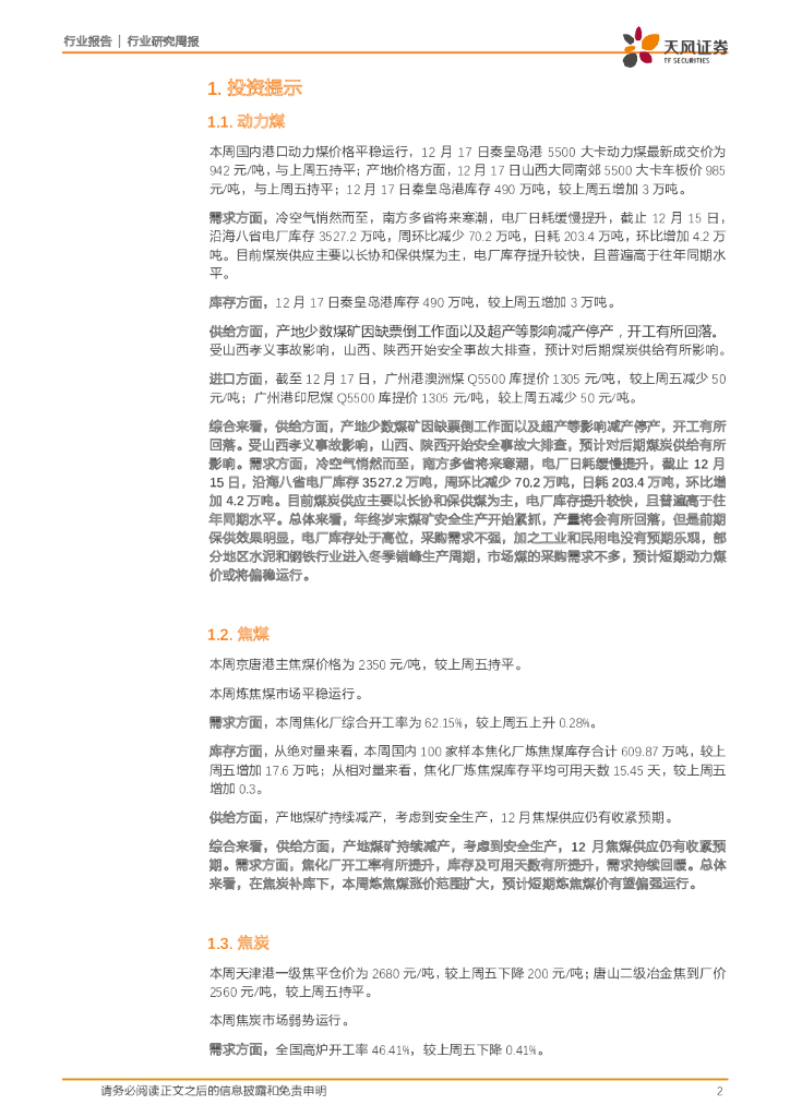 天风证券:煤炭动向:煤炭日均产量连续四个月环比增加,事故影响后期供给缩紧.pdf