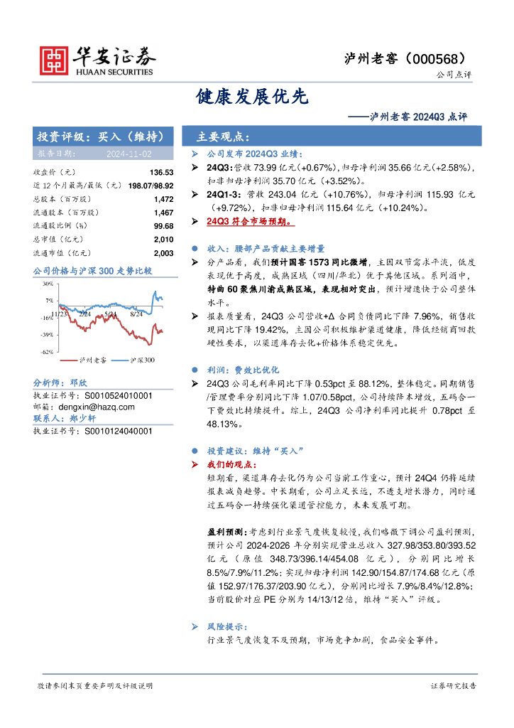 华安证券:泸州老窖2024Q3点评:健康发展优先.pdf