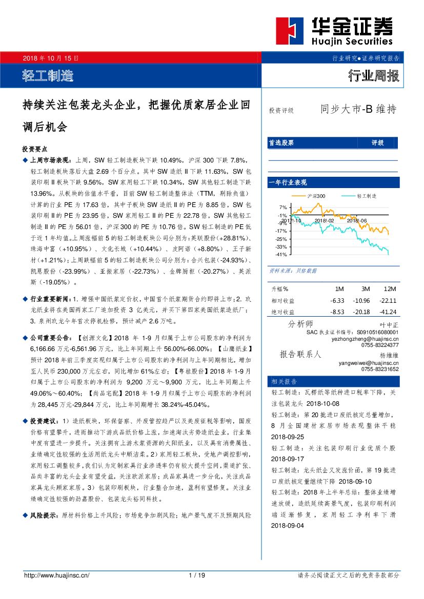 华金证券:轻工制造行业周报:持续关注包装龙头企业,把握优质家居企业回调后机会.pdf