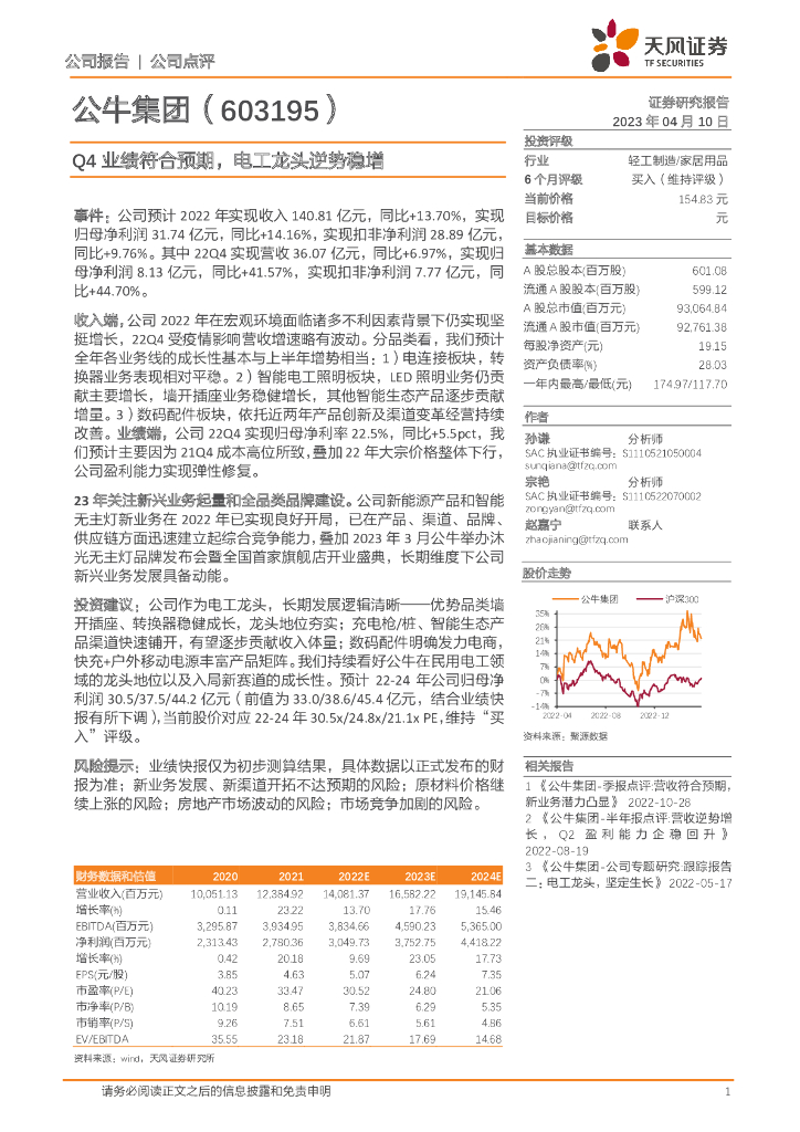天风证券:公牛集团(603195)-Q4业绩符合预期,电工龙头逆势稳增.pdf