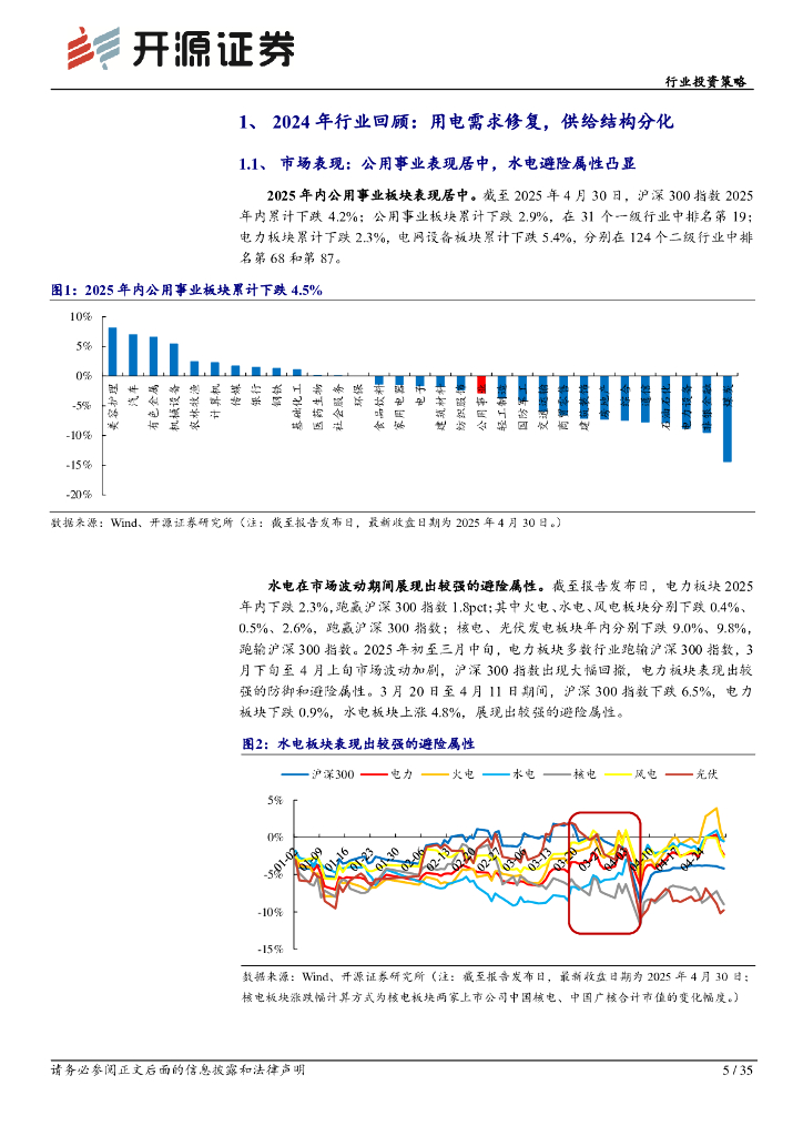 开源证券:电力行业投资策略:电力供需转向宽松,重视盈利稳定品种.pdf