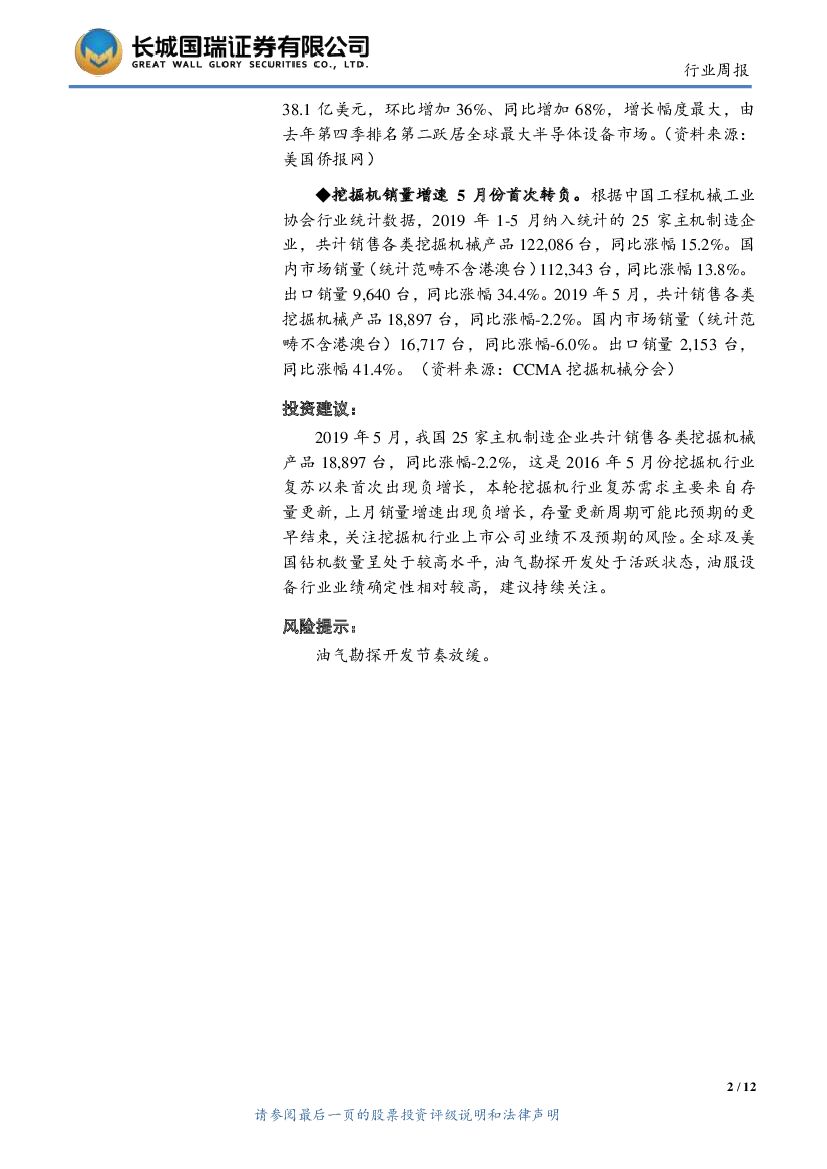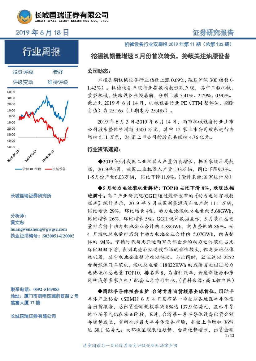 长城国瑞证券:机械设备行业双周报2019年第11期(总第132期):挖掘机销量增速5月份首次转负,持续关注油服设备.pdf