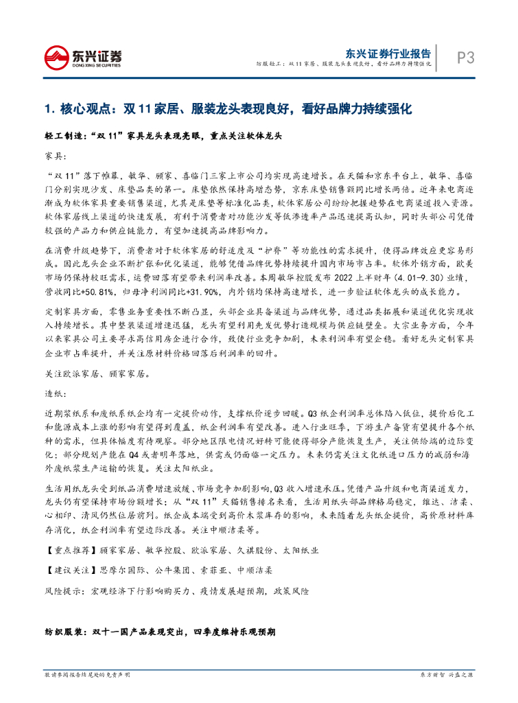 东兴证券:东兴纺服轻工行业周观点:双11家居、服装龙头表现良好,看好品牌力持续强化.pdf