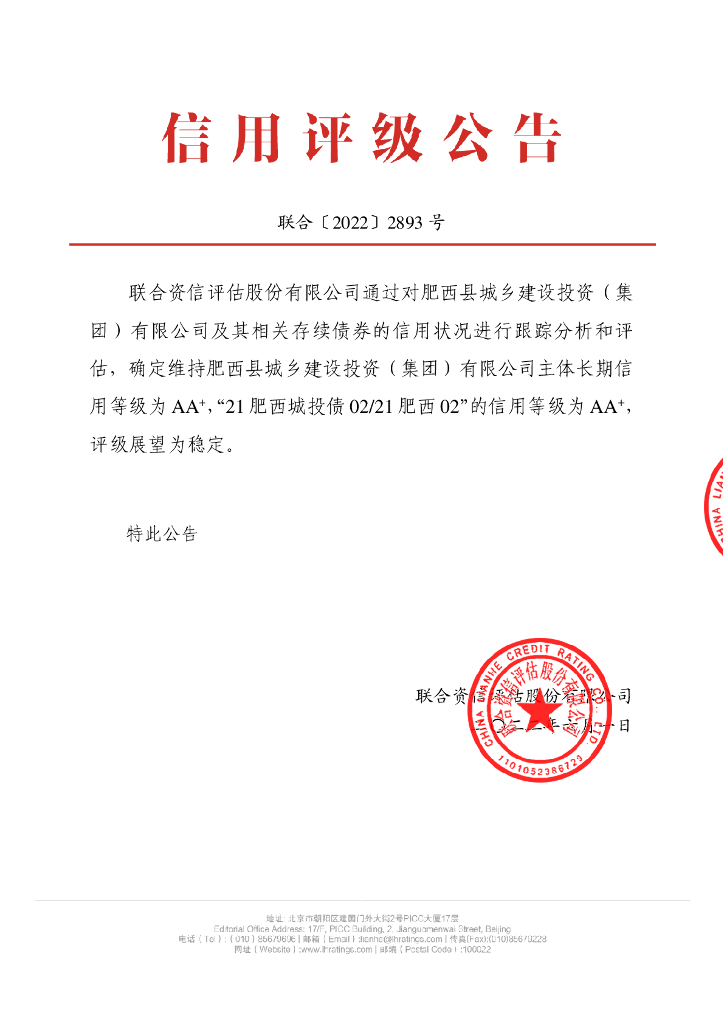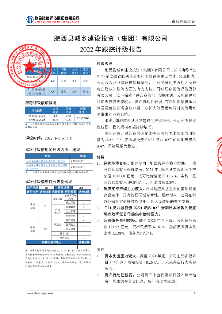 联合资信:肥西县城乡建设投资(集团)有限公司2022年跟踪信用评级报告.pdf