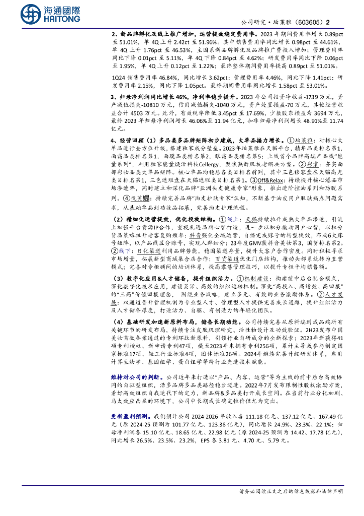 海通国际:珀莱雅(603605)-公司年报点评:1Q24收入增35%净利增46%,龙头组织定力赋能品牌周期.pdf
