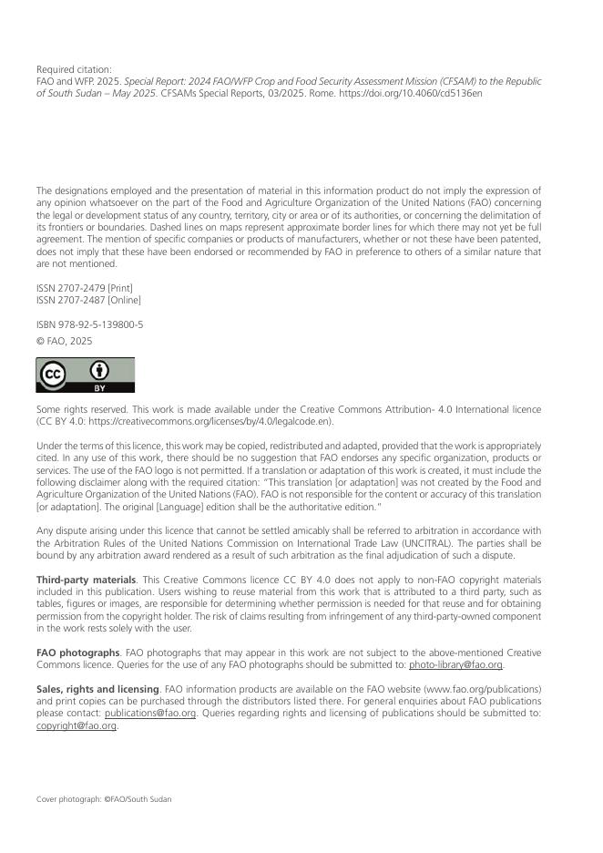 FAO联合国粮农组织:2024年南苏丹共和国共和国的粮农组织WFP农作物和粮食安全评估任务特别报告(英文版).pdf