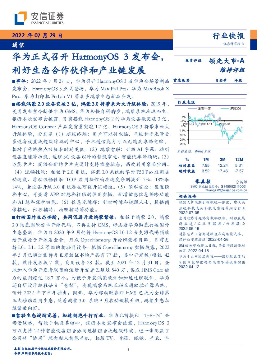 安信证券:通信:华为正式召开HarmonyOS 3发布会,利好生态合作伙伴和产业链发展.pdf