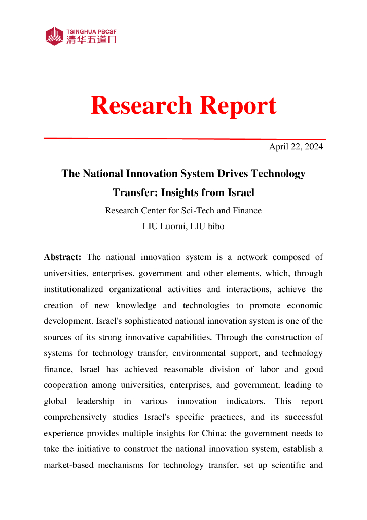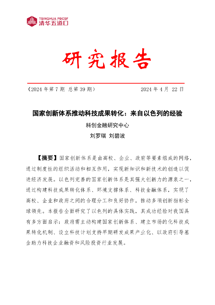 清华五道口:国家创新体系推动科技成果转化:来自以色列的经验报告(2024年第7期 总第39期).pdf