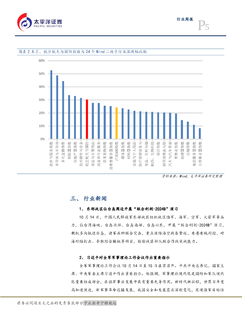 太平洋证券:军工行业周报:东部战区位台岛周边开展“联合利剑-2024B”演习.pdf