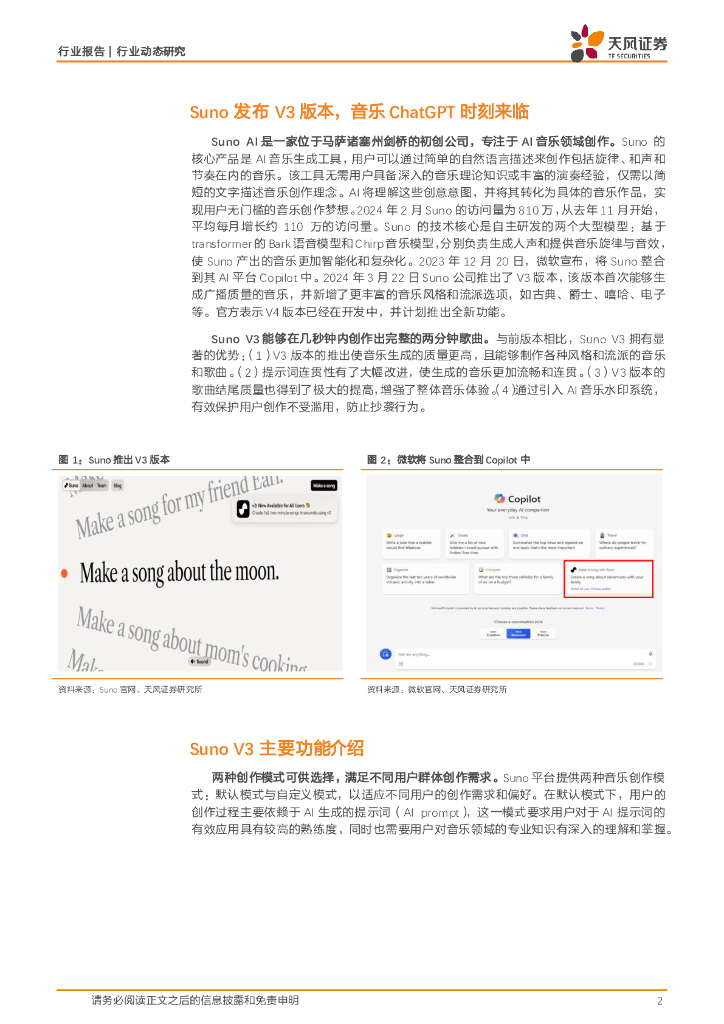 天风证券:AI行业点评:Suno发布V3版本:Suno发布V3版本,音乐ChatGPT时刻来临.pdf