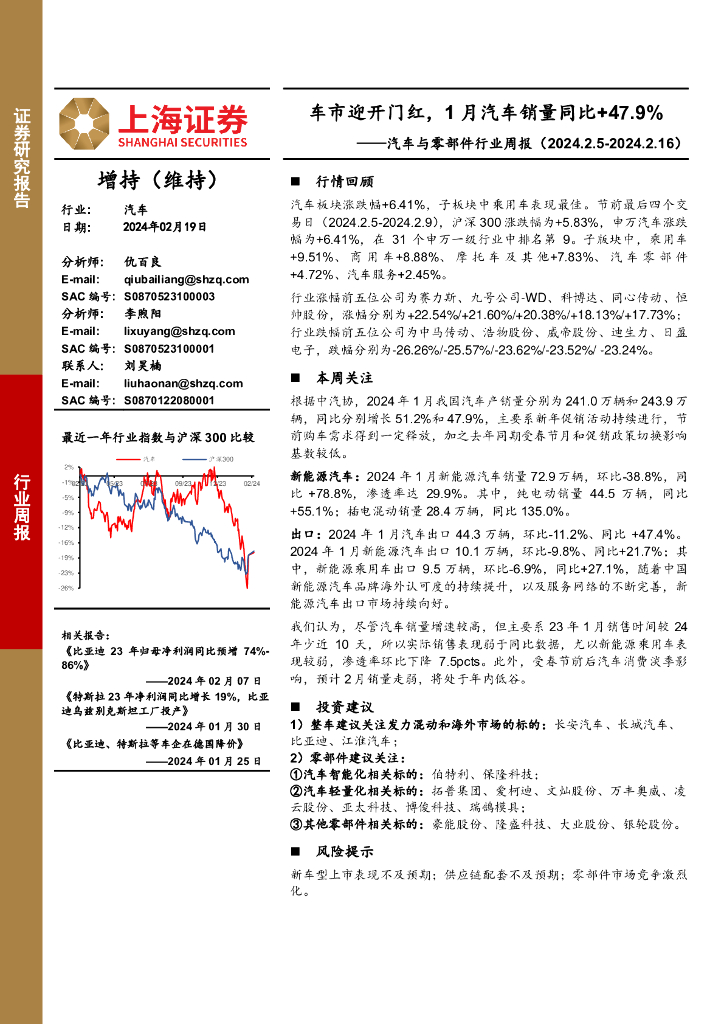 上海证券:汽车与零部件行业周报:车市迎开门红,1月汽车销量同比+47.9%.pdf
