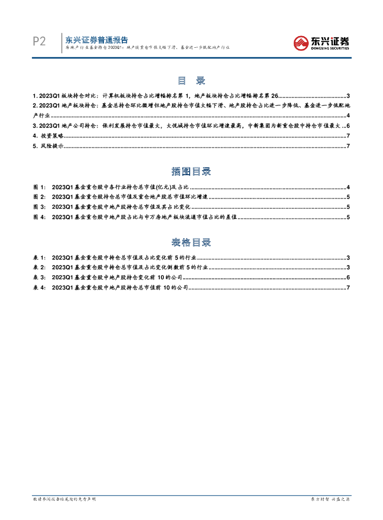 东兴证券:房地产行业基金持仓2023Q1:地产股重仓市值大幅下滑、基金进一步低配地产行业.pdf