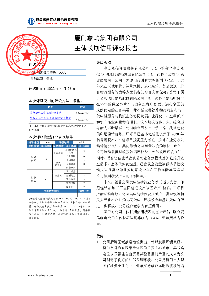 联合资信:厦门象屿集团有限公司主体长期信用评级报告.pdf