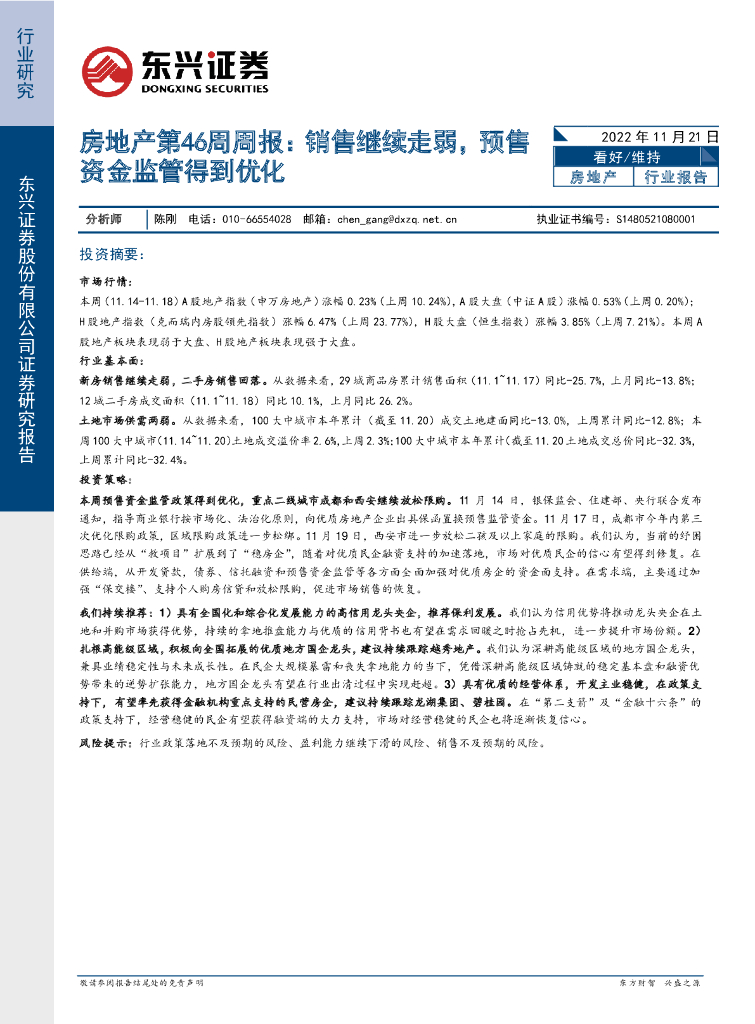 东兴证券:房地产第46周周报:销售继续走弱,预售资金监管得到优化.pdf