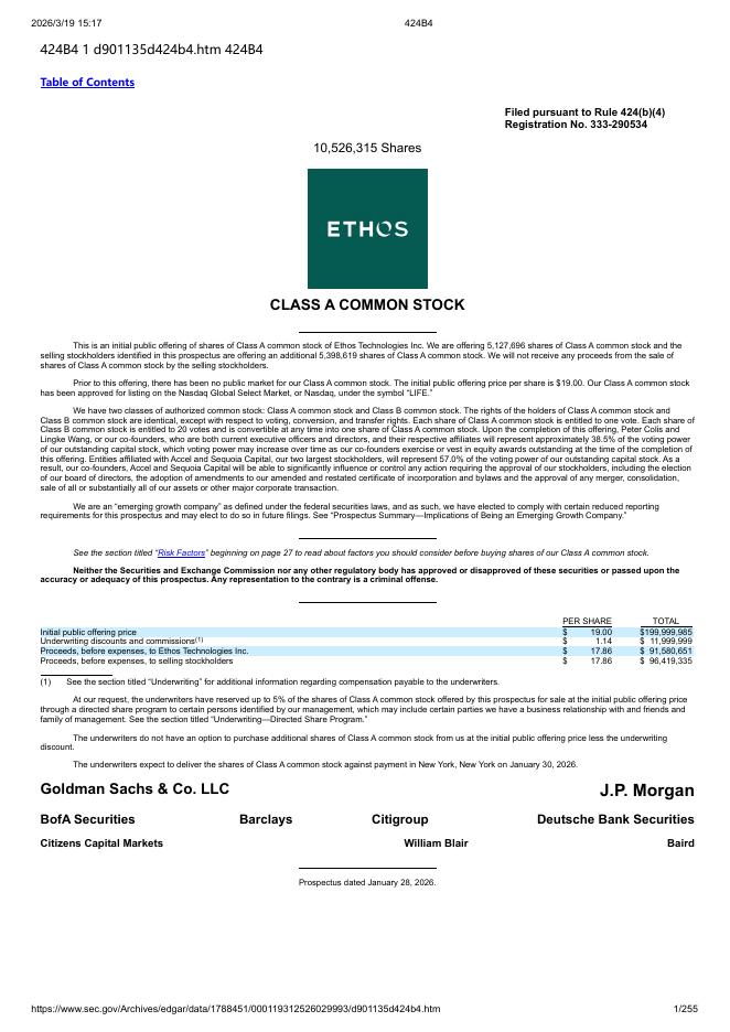 Ethos Technologies Inc.美股纳斯达克IPO上市招股说明书.pdf