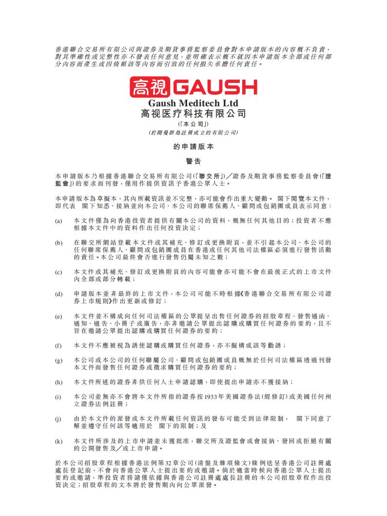 Gaush高视医疗港交所IPO上市招股说明书:眼科医疗器械市场份额最大.pdf