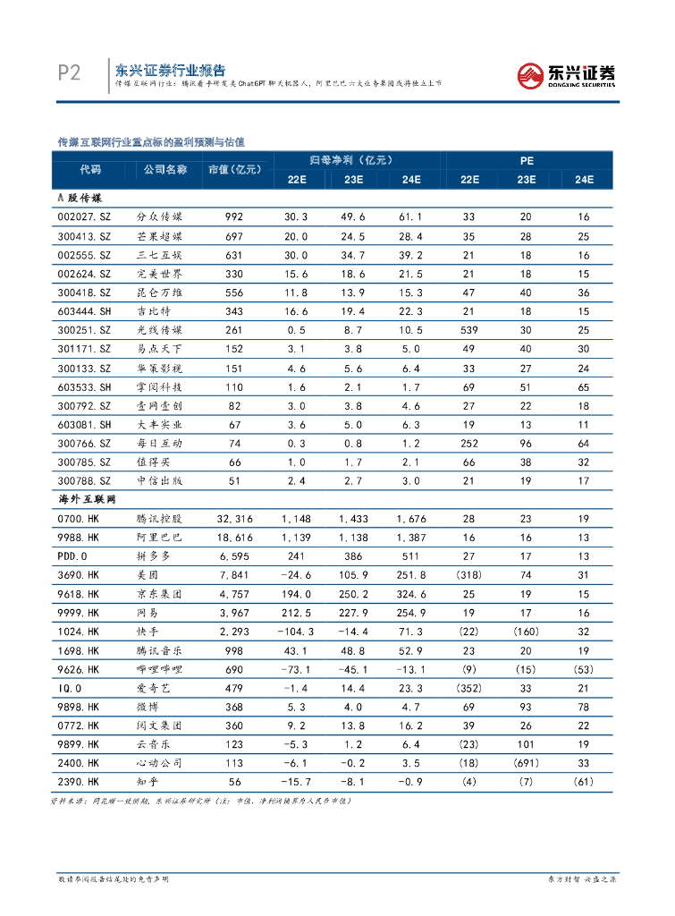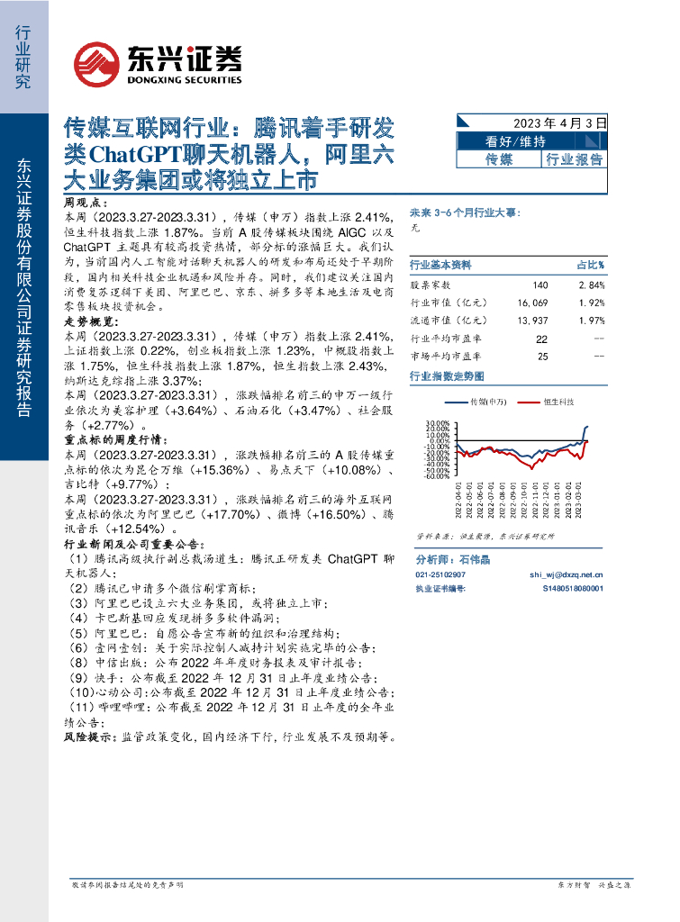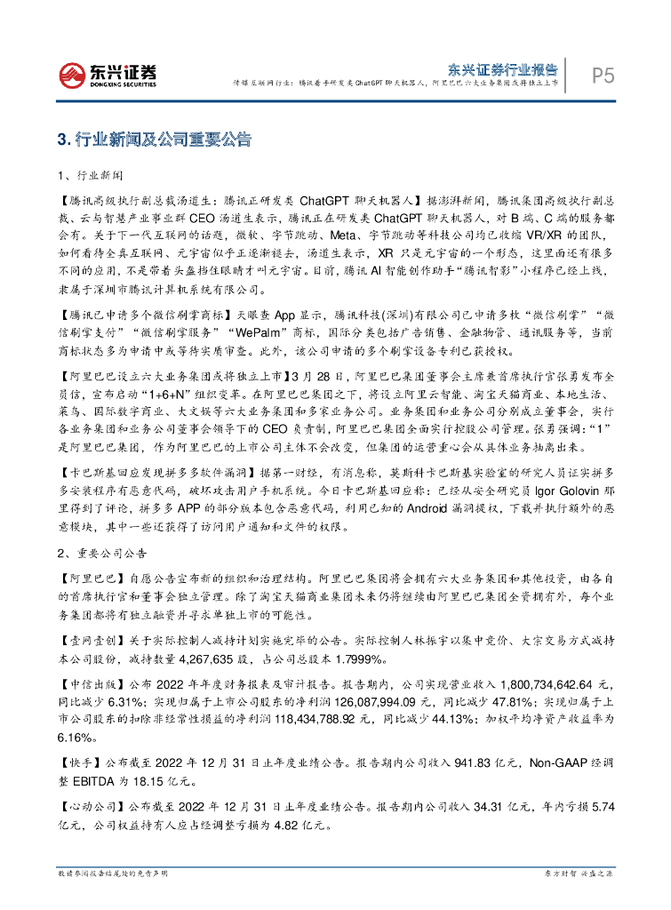 东兴证券:传媒互联网行业:腾讯着手研发类ChatGPT聊天机器人,阿里六大业务集团或将独立上市.pdf