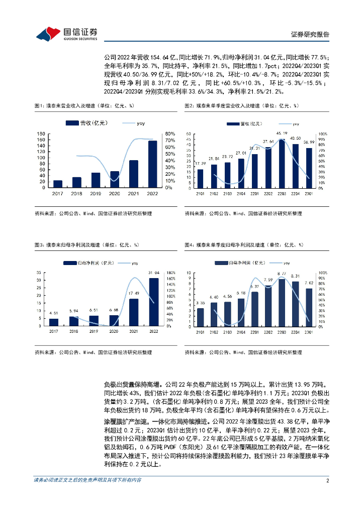 国信证券:璞泰来(603659)-2022年报及2023年一季报业绩点评:涂覆膜一体化布局持续推进,深入打造锂电平台型公司.pdf