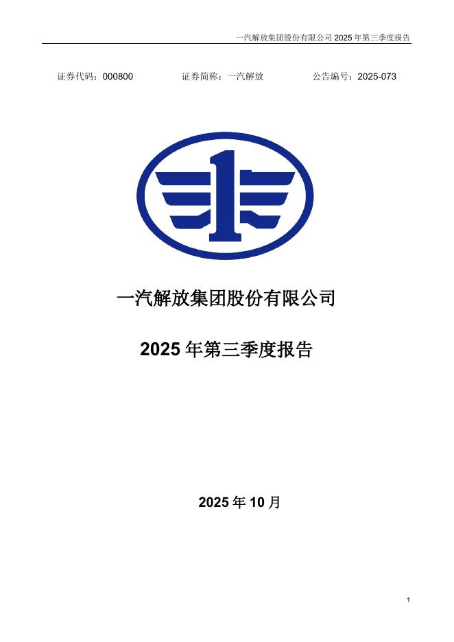 000800-一汽解放:2025年三季度报告.pdf
