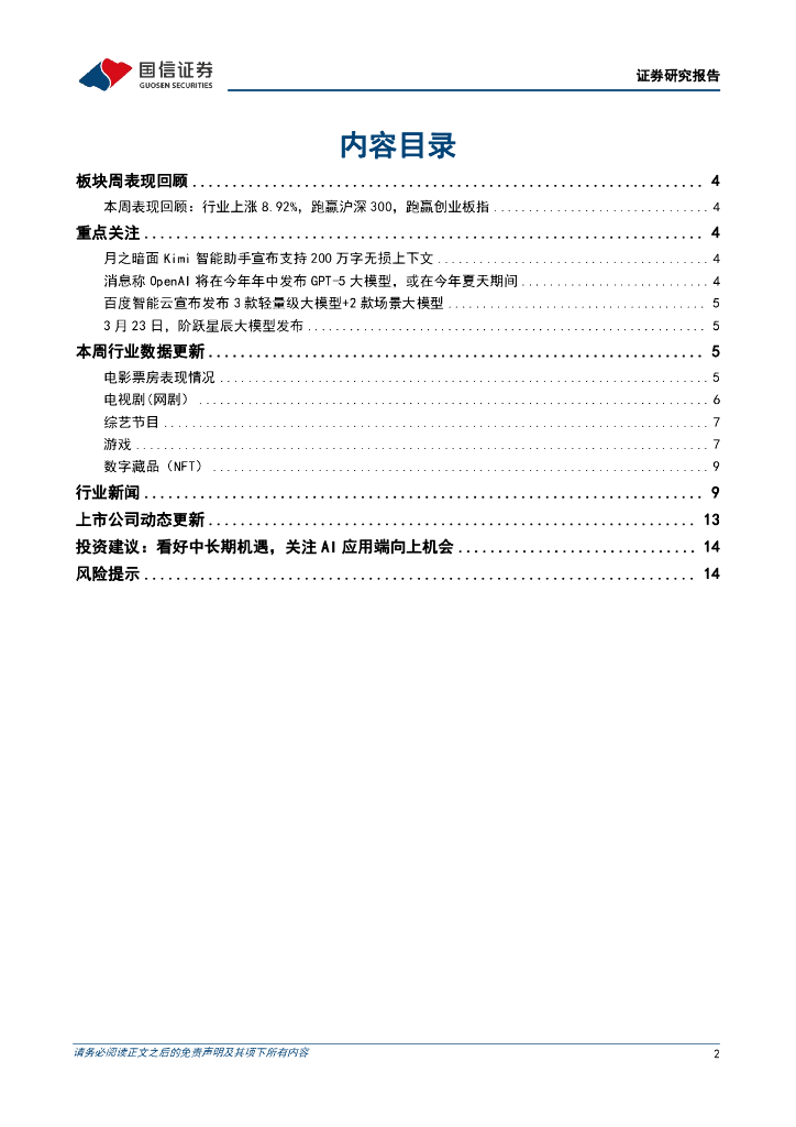 国信证券:传媒互联网周报:Kimi、阶跃星辰等国内大模型进展迅速,应用端有望持续反弹.pdf