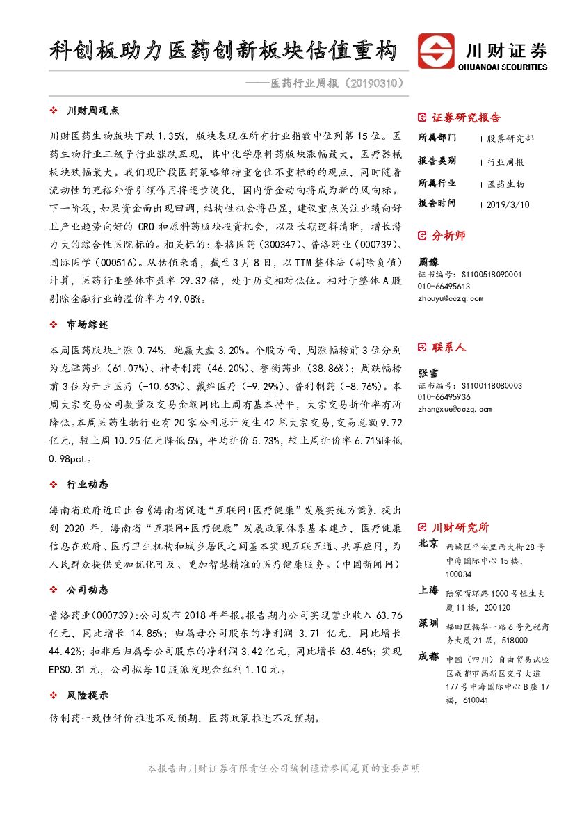 川财证券:医药行业周报:科创板助力医药创新板块估值重构.pdf