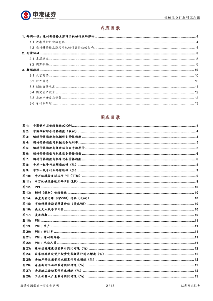 申港证券:机械设备行业研究周报:原材料成本上涨对于机械设备行业影响.pdf