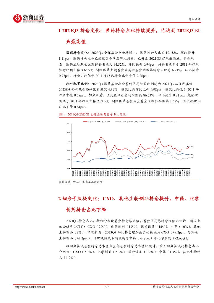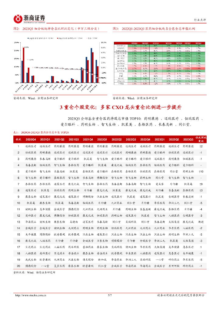 浙商证券:医药生物:2023Q3医药基金持仓点评报告-持仓持续提升,CXO增持较多.pdf