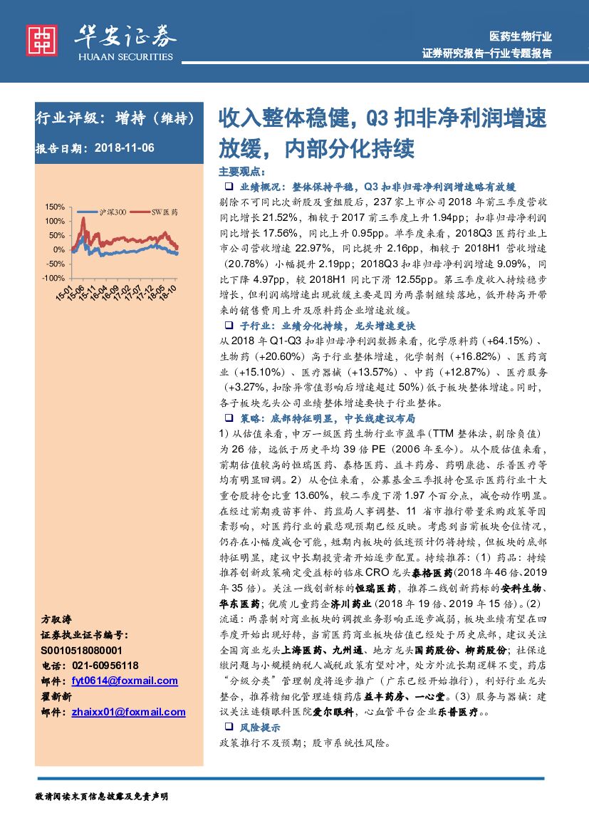 华安证券:医药生物行业专题报告:收入整体稳健,Q3扣非净利润增速放缓,内部分化持续.pdf