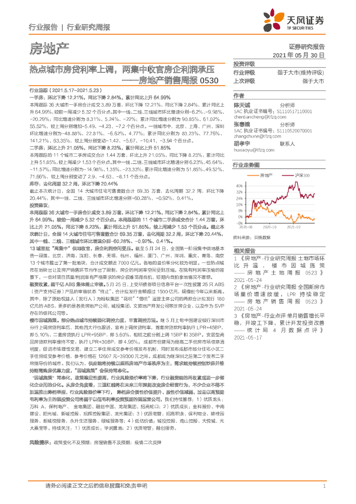 天风证券:房地产销售周报:热点城市房贷利率上调,两集中收官房企利润承压.pdf