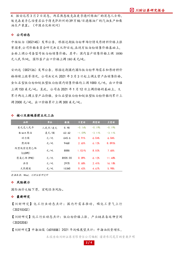 川财证券:化工行业日报:川财研究能源及公用事业产业链核心数据跟踪日报.pdf