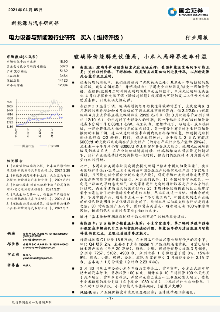 国金证券:电力设备与新能源行业研究:玻璃降价缓解光伏僵局,小米入局跨界造车升温.pdf