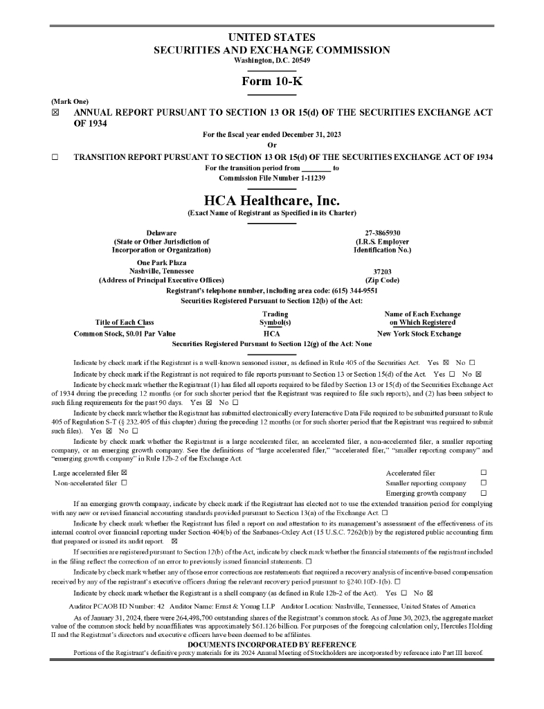 HCA Healthcare, Inc.(HCA)2023财年年度报告(英文版).pdf