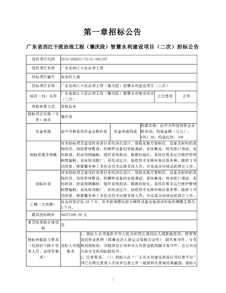 广东省西江干流治理工程(肇庆段)智慧水利建设项目招标文件.pdf