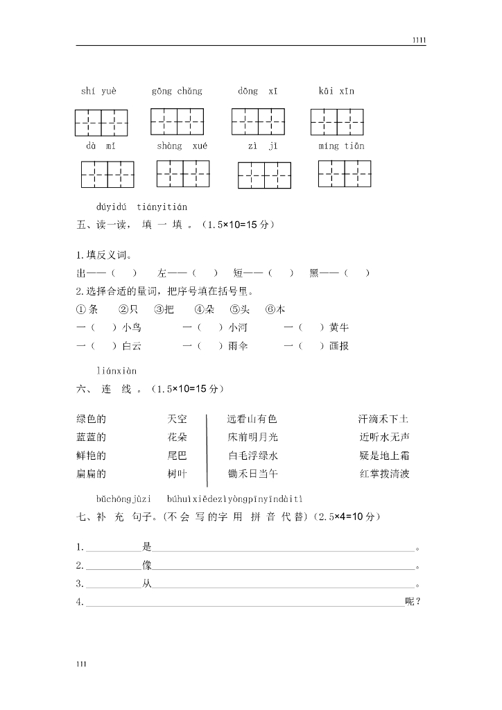 部编语文一年级上册期末复习试卷 (2).doc