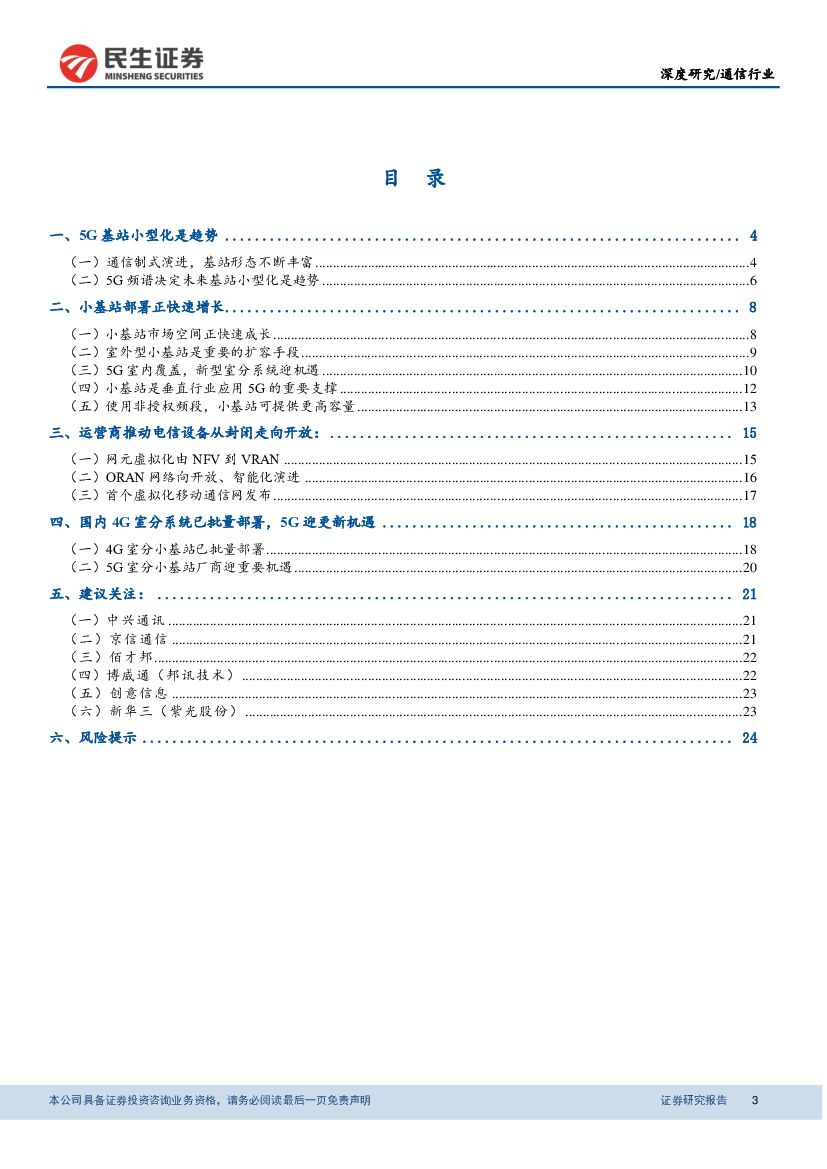 民生证券:通信行业深度报告:5G小基站行业报告:从封闭走向开放,中小厂商迎5G小基站机遇.pdf
