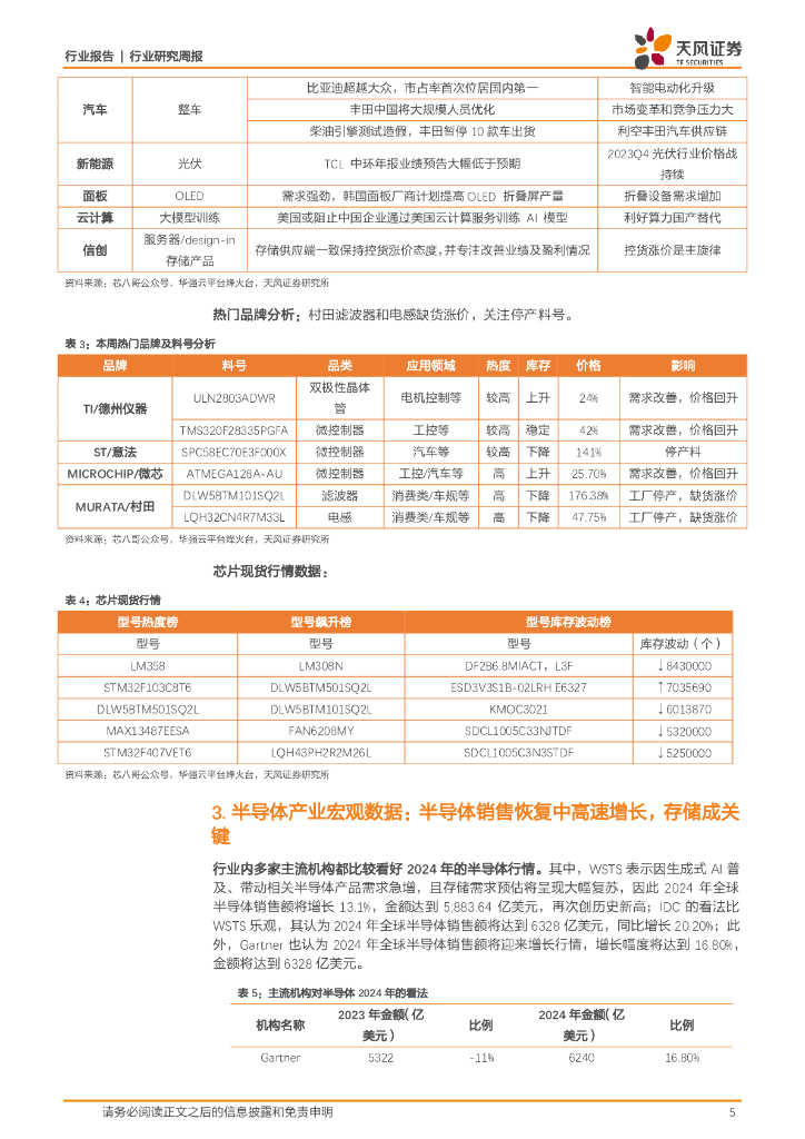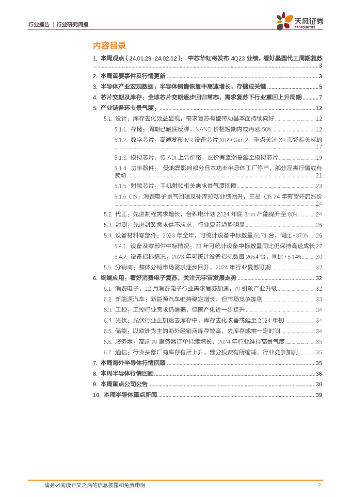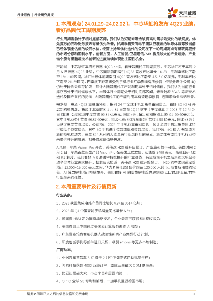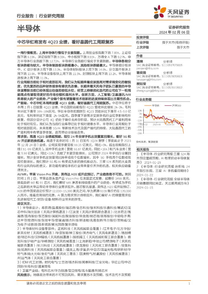 天风证券:半导体行业研究周报:中芯华虹将发布4Q23业绩,看好晶圆代工周期复苏.pdf