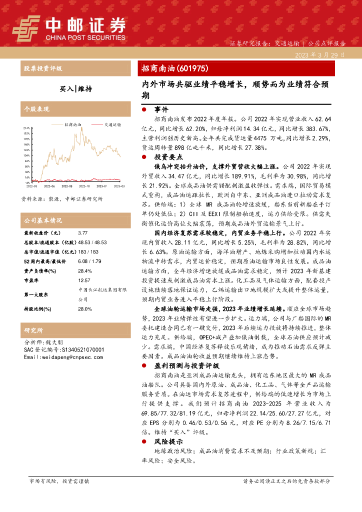 中邮证券:招商南油(601975)-内外市场共驱业绩平稳增长,顺势而为业绩符合预期.pdf