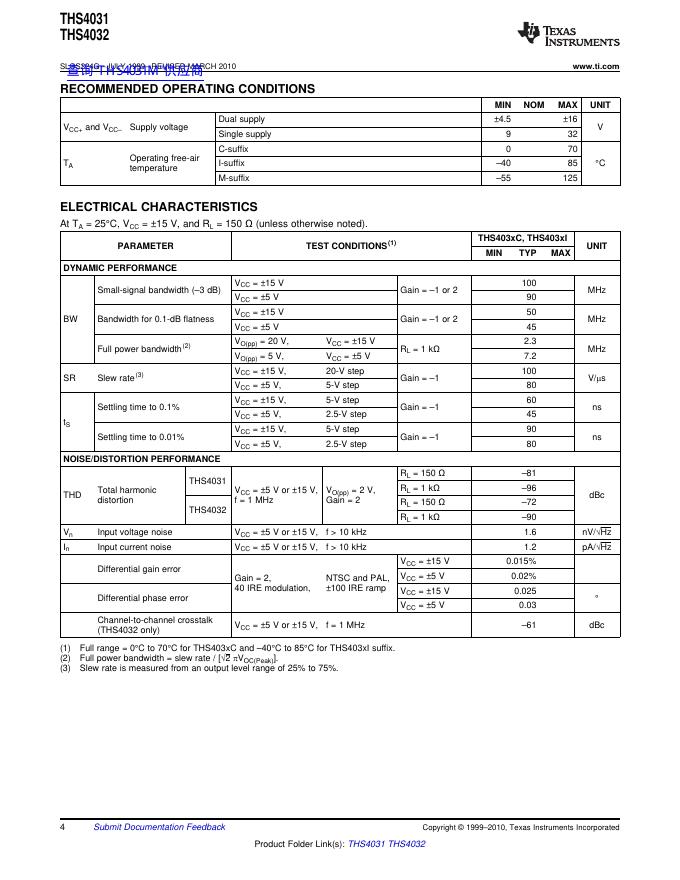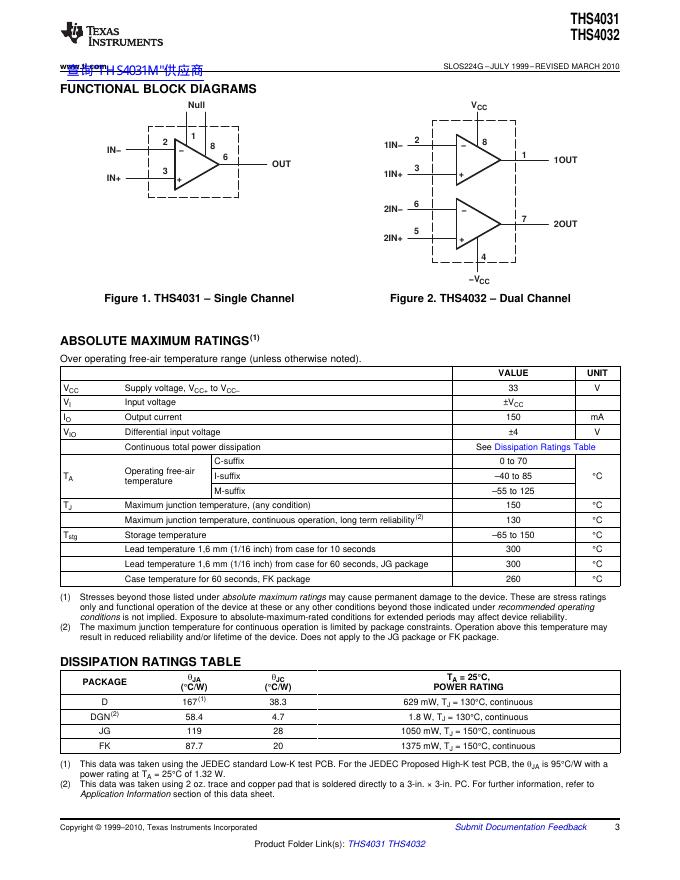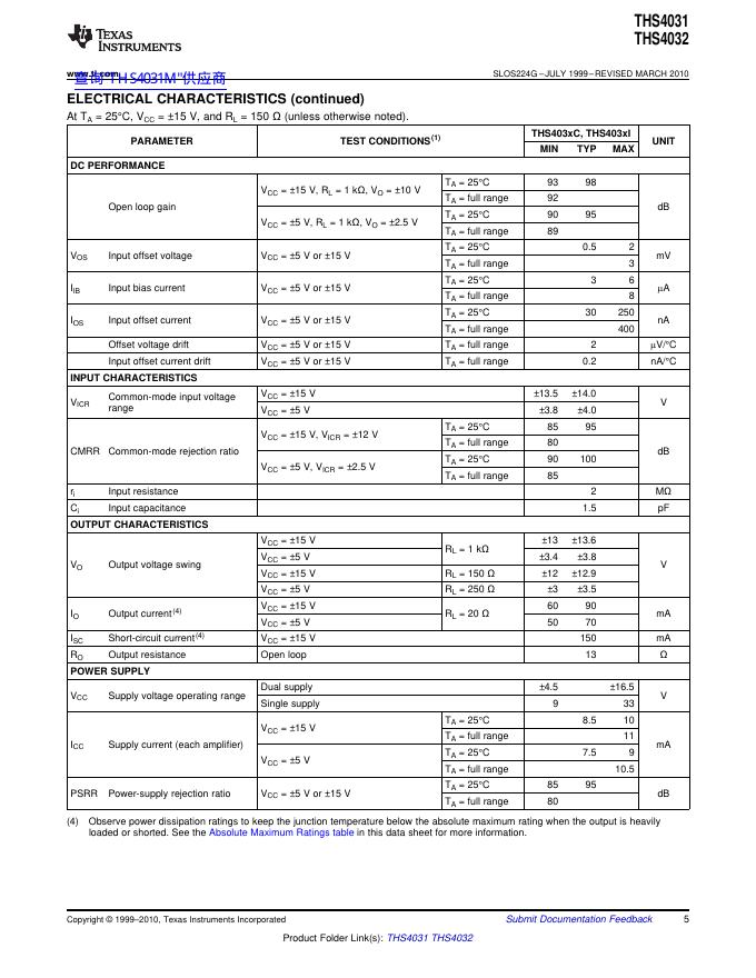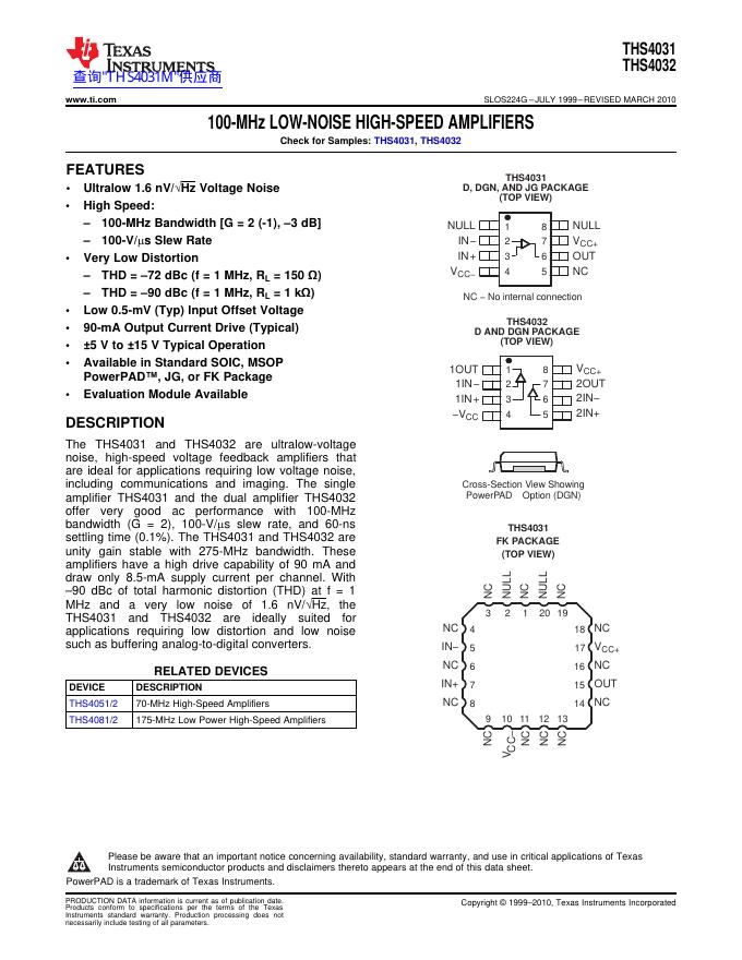 TEXAS INSTRUMENTS THS4031/THS4032 数据手册.pdf