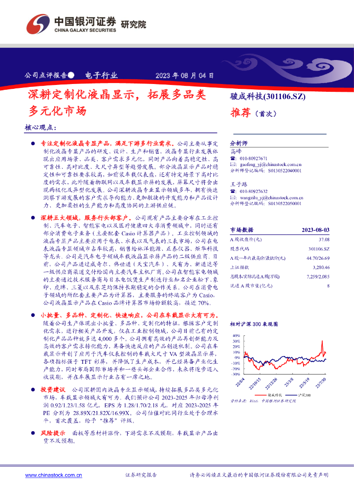 中国银河:骏成科技(301106)-深耕定制化液晶显示,拓展多品类多元化市场.pdf