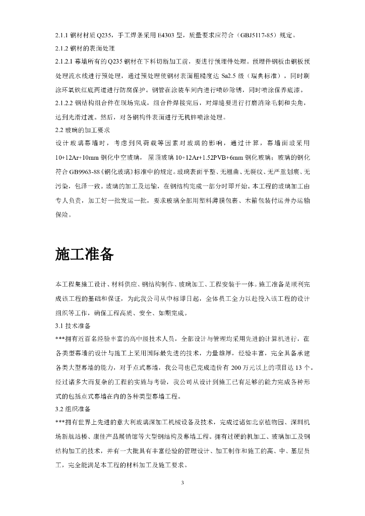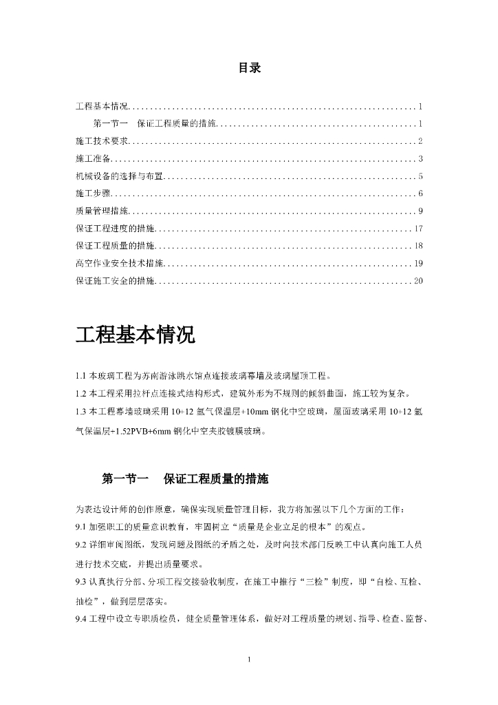 苏南游泳跳水馆点连接玻璃幕墙及玻璃屋顶工程施工方案(23页).doc