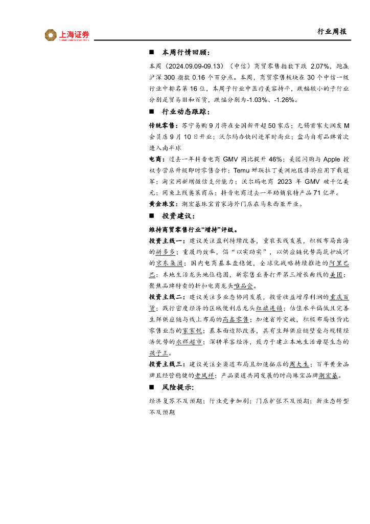 上海证券:商贸零售行业周报:8月社零同比增长2.1%,关注高股息低估值的零售企业.pdf
