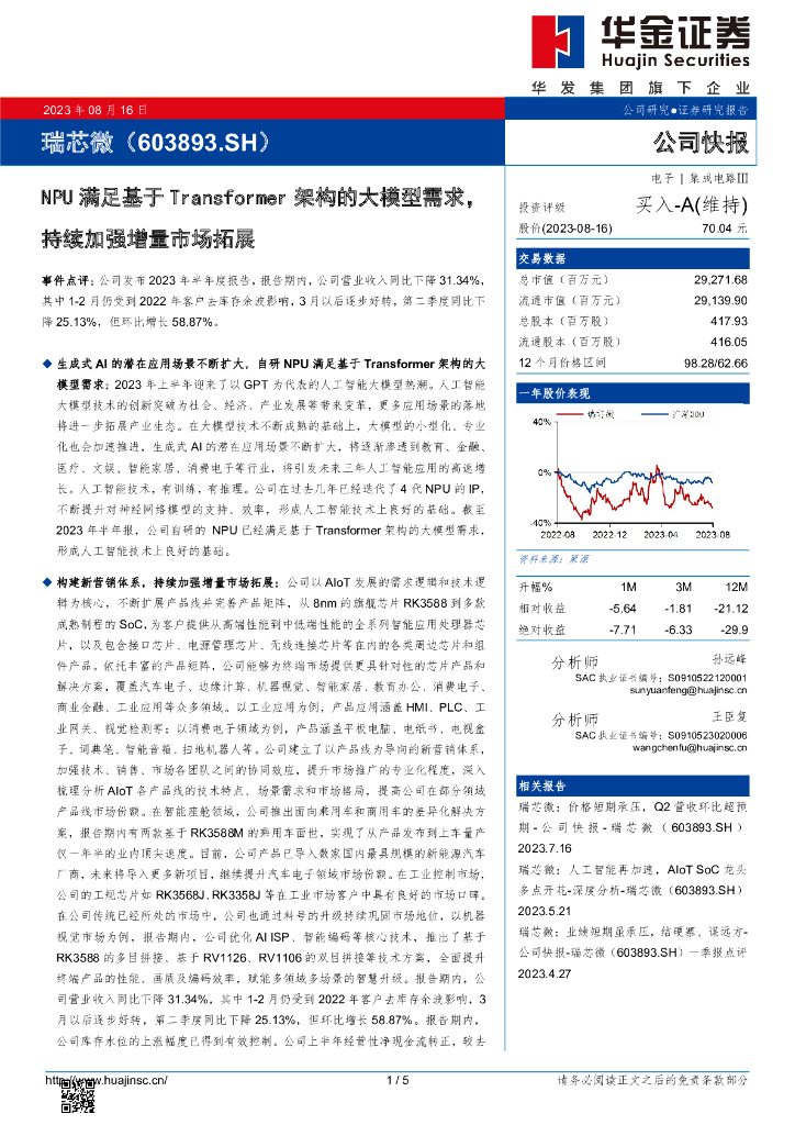 华金证券:瑞芯微(603893)-NPU满足基于Transformer架构的大模型需求,持续加强增量市场拓展.pdf