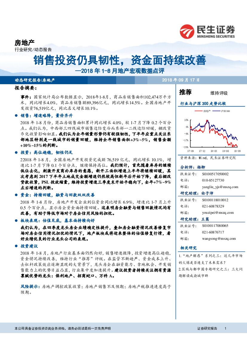 民生证券:2018年1-8月地产宏观数据点评:销售投资仍具韧性,资金面持续改善.pdf