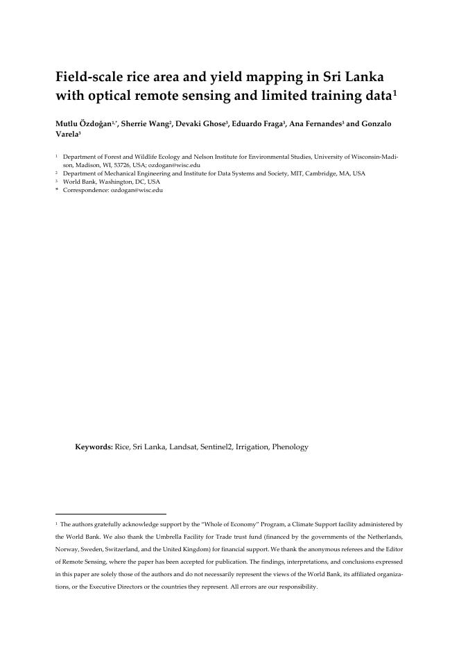 世界银行:利用光学遥感和有限训练数据绘制斯里兰卡田间水稻面积和产量图(英文版).pdf