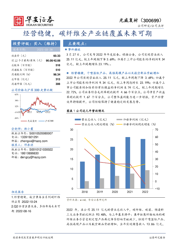 华安证券:光威复材(300699)-经营稳健,碳纤维全产业链覆盖未来可期.pdf