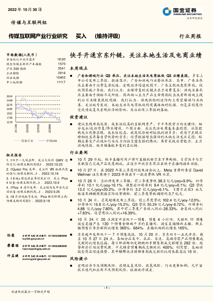 国金证券:传媒互联网产业行业研究:快手开通京东外链,关注本地生活及电商业绩.pdf