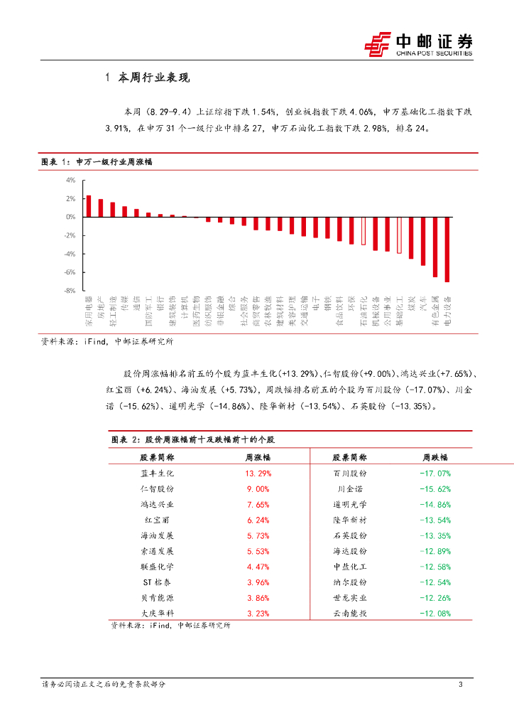 中邮证券:化工新材料行业周报:油价下跌致相关化工品跌幅较大,关注POE等边际需求推动的国产替代逻辑的品种.pdf